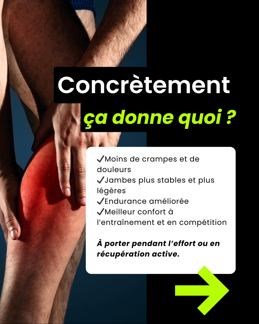 Résultat concret : Une approche 360° qui limite les vibrations musculaires pendant l'effort, soulage les douleurs post-exercice et accélère ta récupération naturellement.